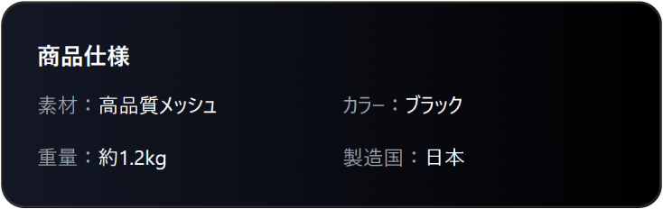 通気性に優れた特殊メッシュ素材を使用。長時間の使用でも快適性を保持します。