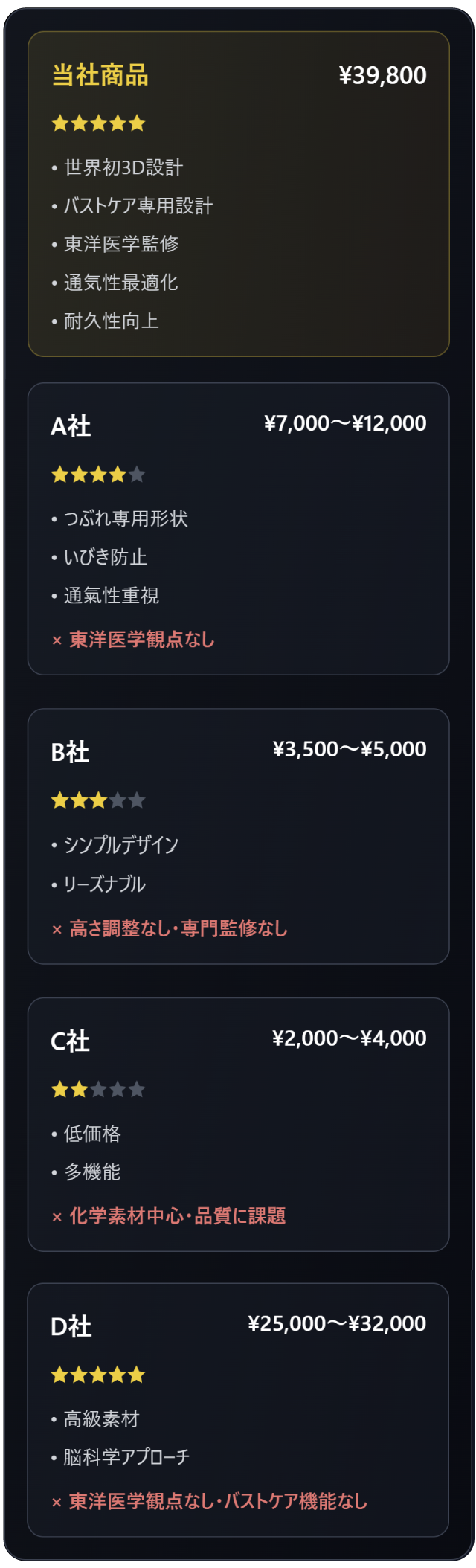 人体工学と東洋医学の知見を融合し、体の各部位を最適にサポートする精密な立体構造を実現しました。